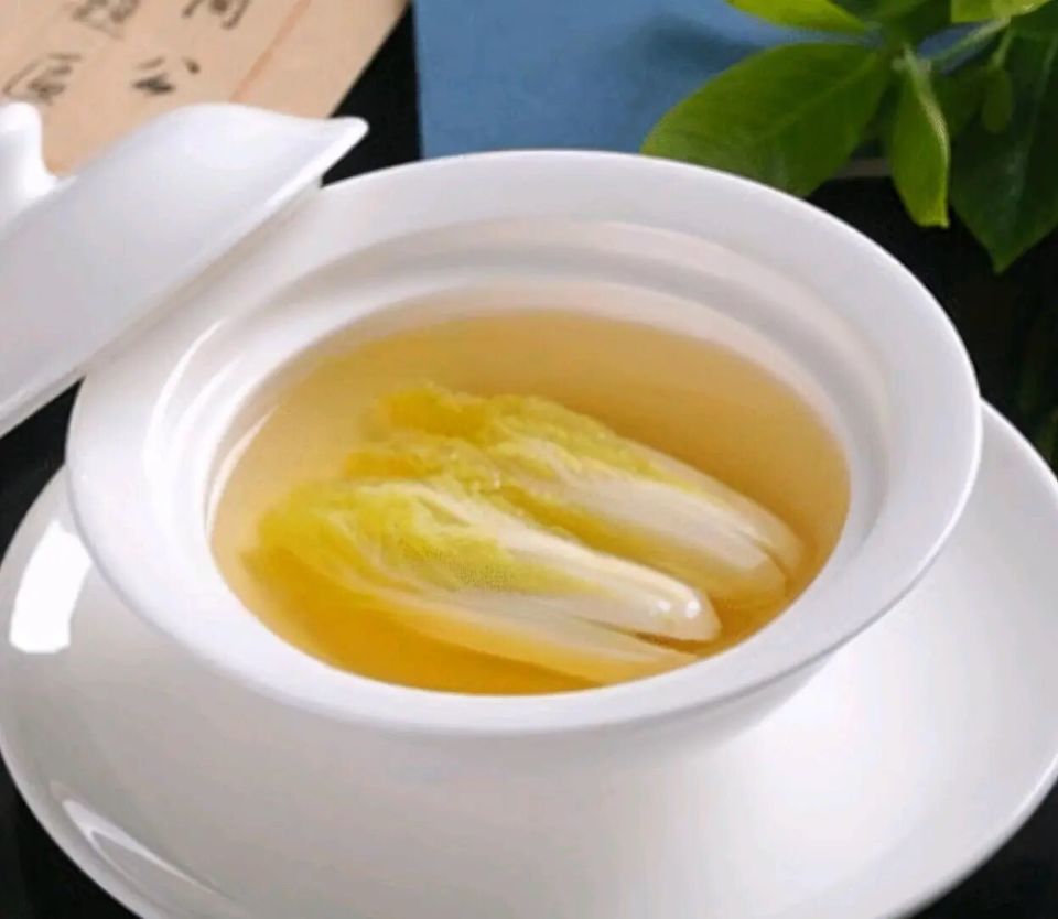 第四步处理白菜,将白菜心洗净,放入沸水中快速焯烫,去掉生涩味,捞出后整齐摆放在汤碗中。第五步成菜,将清澈的热高汤浇在白菜心上,让白菜充分吸收汤的鲜味,无需添加多余调料,即可上桌食用。